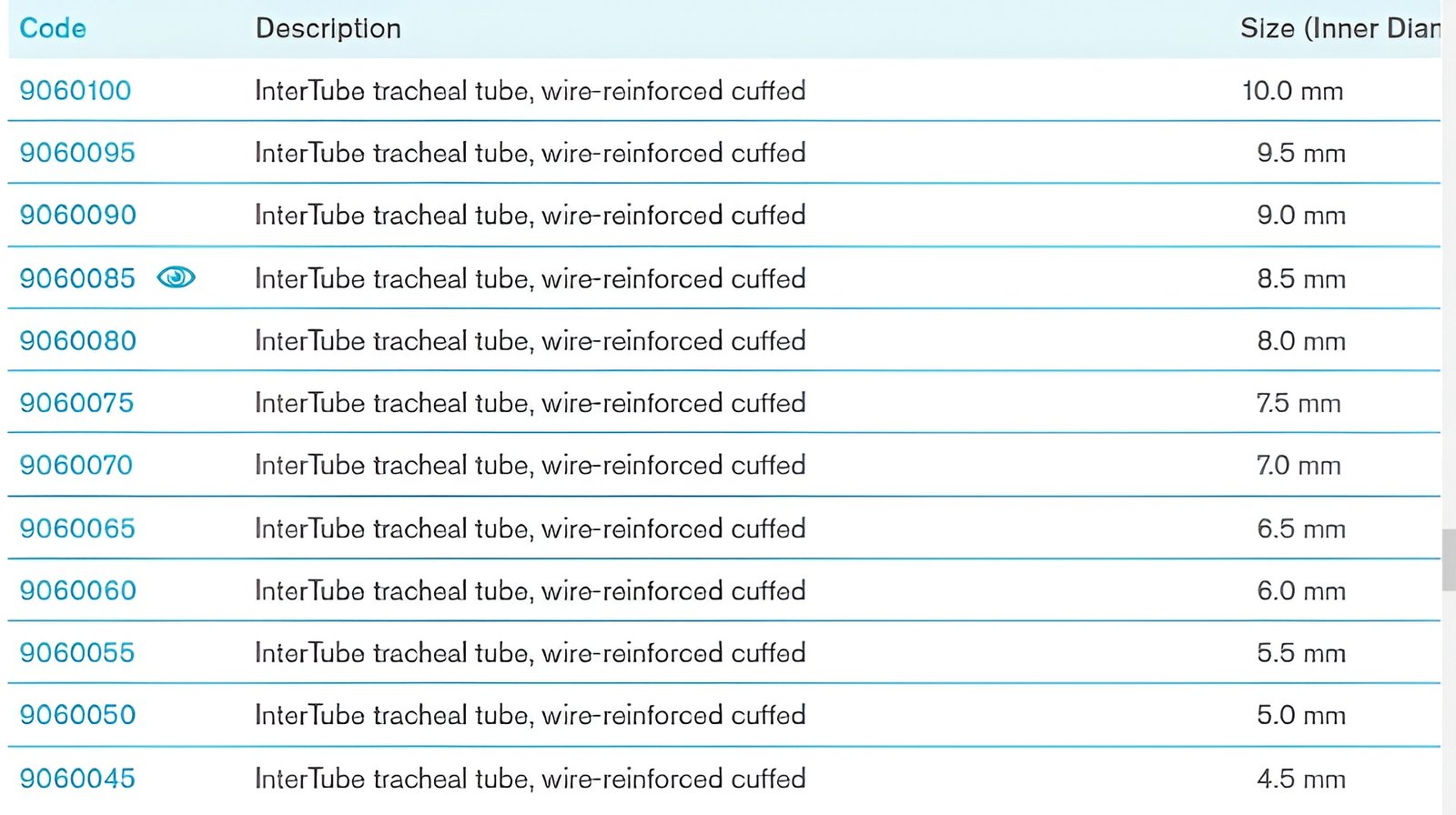 InterTube™ tracheal tube, wire-reinforced cuffed, ID 8.5mm