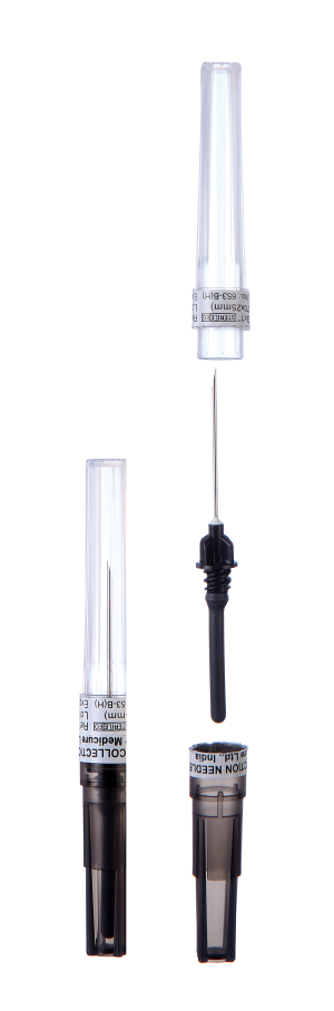On removing blood collection tube from the needle, it is covered and closed with rubber shield