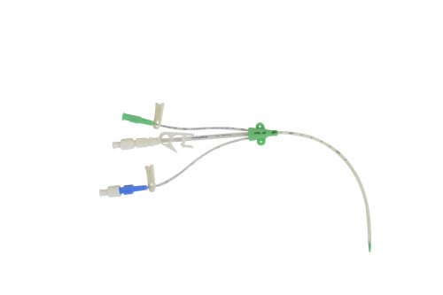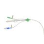 It consists of 3 lumens completely separated on the total length of the catheter. Each lumen leads, at the distal tip of the catheter, to a distinct hole. At the proximal end, the lumens of the catheter are connected to extension tubes of different lengths. Each extension tube includes a different coloured hub and is marked “Distal”, “Medial”, and “Proximal” so as to identify easily the different infusion lines.