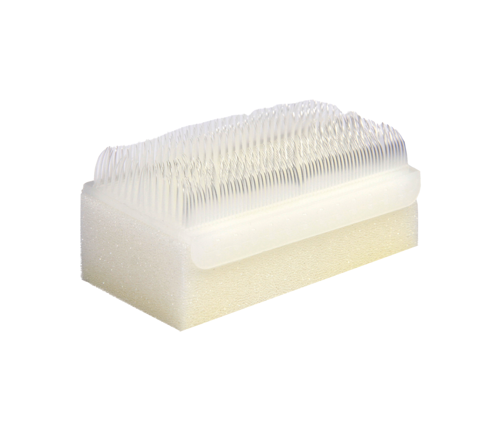 Bristles for dirt removal, sponge for gentle cleansing and antiseptic application.