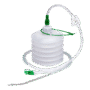 Suitable to offer surgeons an effective device for close wound drainage under negative pressure postoperatively with the option to use one or two catheters simultaneously. Redon drain catheters are provided with size colour coded, radio opaque line and satin smooth eyes. Connecting tube is kink resistant and is provided with additional strength to withstand the suction. Available in different sizes with catheter matching size curved needle to meet minor,moderate to heavy drainage needs. Easy to depress chamber to activate the suction of bellow unit, single handedly.