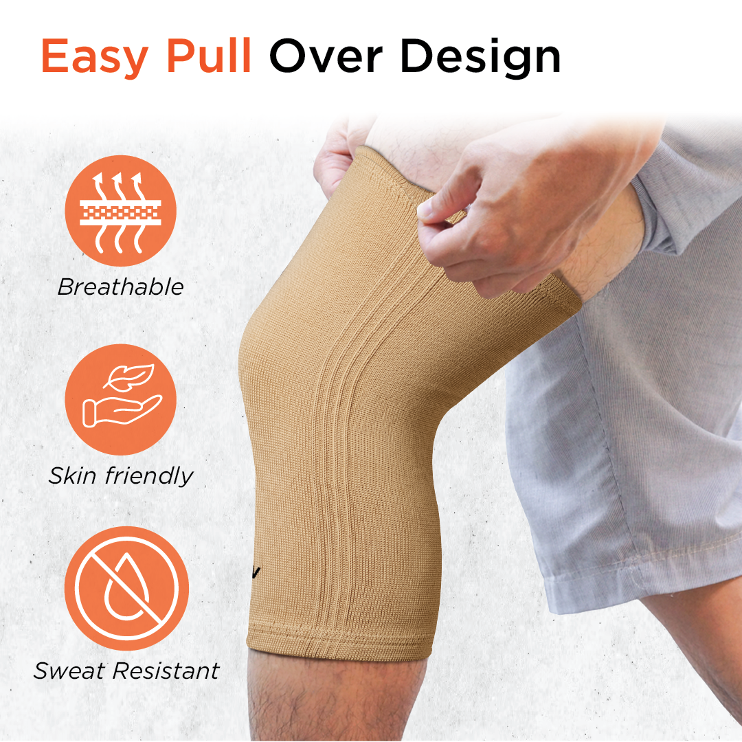 Made from Latex free double covered lycra is blended with composite yarn to make the material durable, breathable & skin-friendly. The elastic lasts longer and is anti-bacterial and anti-fungal. You can find your ideal pair by going through the knee cap size chart